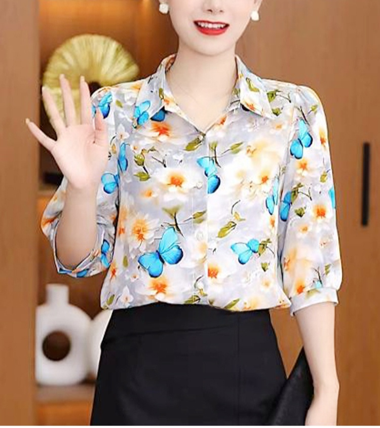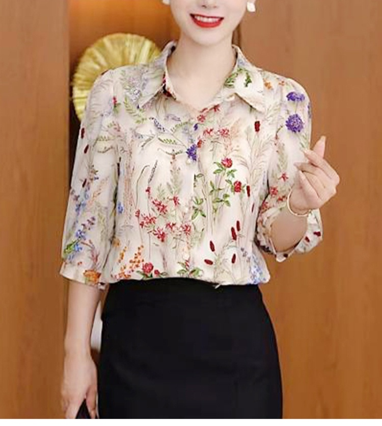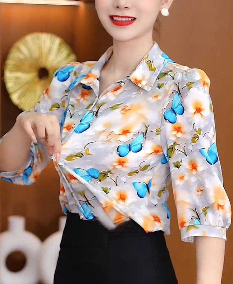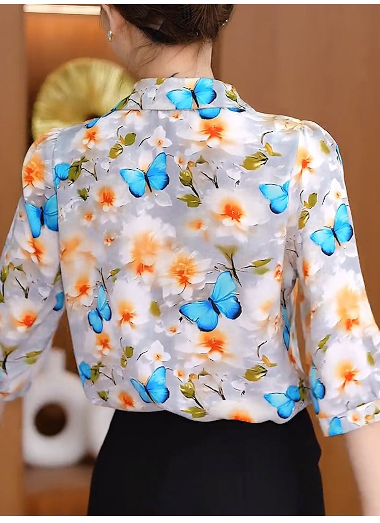 쉬폰 프린트 여성 셔츠
